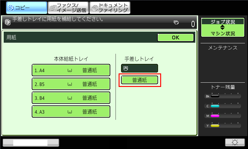 ④手差しトレイの[用紙タイプ](例:普通紙)を押してください。