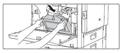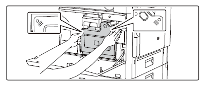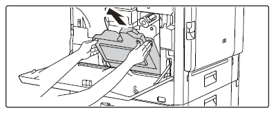 両手でトナー回収容器を持ち、ゆっくりと上に持ち上げます。