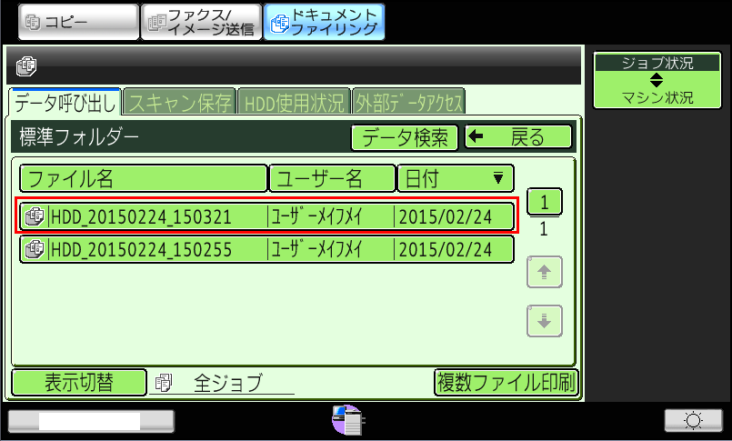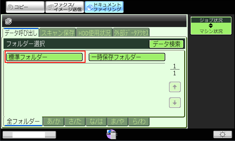 2.「データ呼び出し」画面が表示されますので、[標準フォルダー]を押してください。