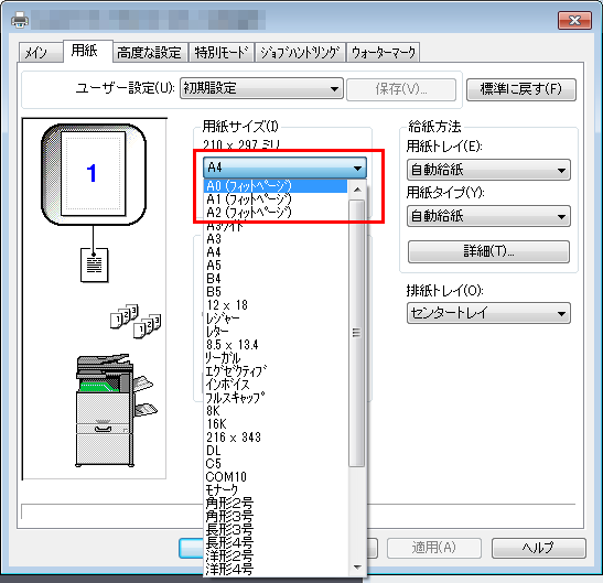A0用紙を指定できるCAD等のアプリケーションから印刷する場合に使用します。
