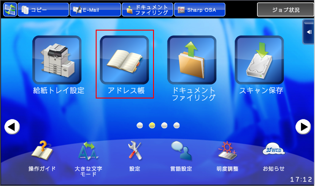 ①「アドレス帳」画面で[宛先の登録/編集をする]を押してください。