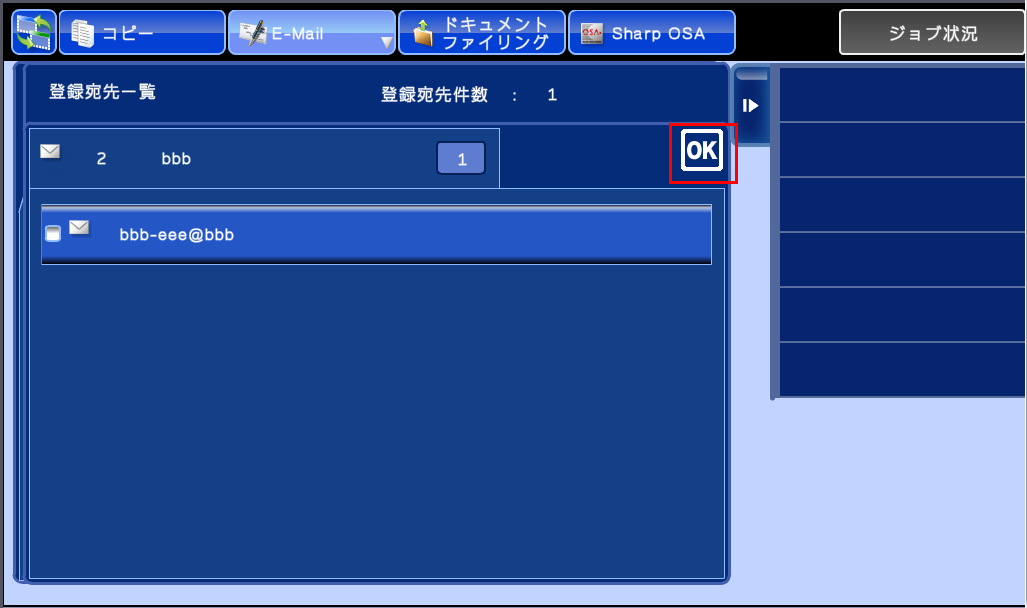 ⑨「登録宛先一覧」画面に戻りますので、[OK]を押してください。