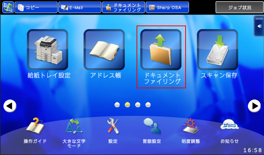 1.ホーム画面の[ドキュメントファイリング]を押してください。