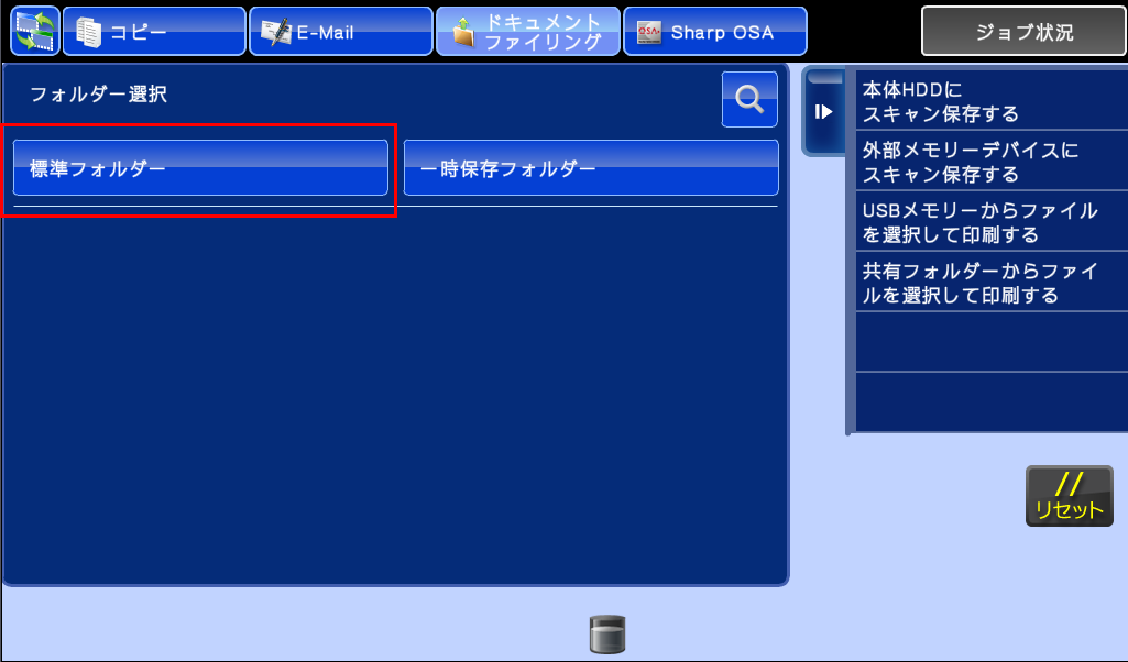 ※「標準フォルダー」と「一時保存フォルダー」に保存されるデータの違いについては、ユーザーズマニュアルの「ドキュメントファイリングについて」をご覧ください。