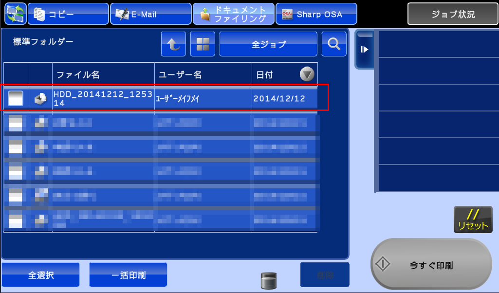 3.「標準フォルダー」画面が表示されますので、再送信したいファイルを押してください。