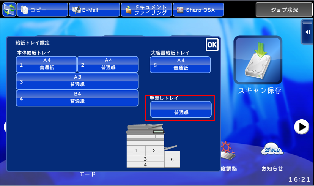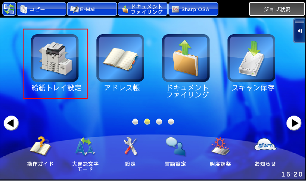 ②ホーム画面から「給紙トレイ設定」を選択してください。