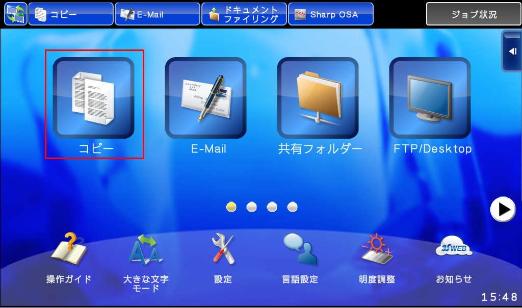②ホーム画面で[コピー]を押してください。
