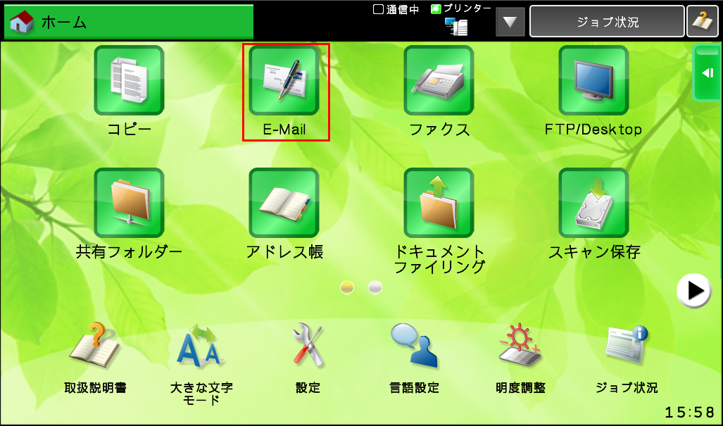②ホーム画面の[E-mail]を押してください。