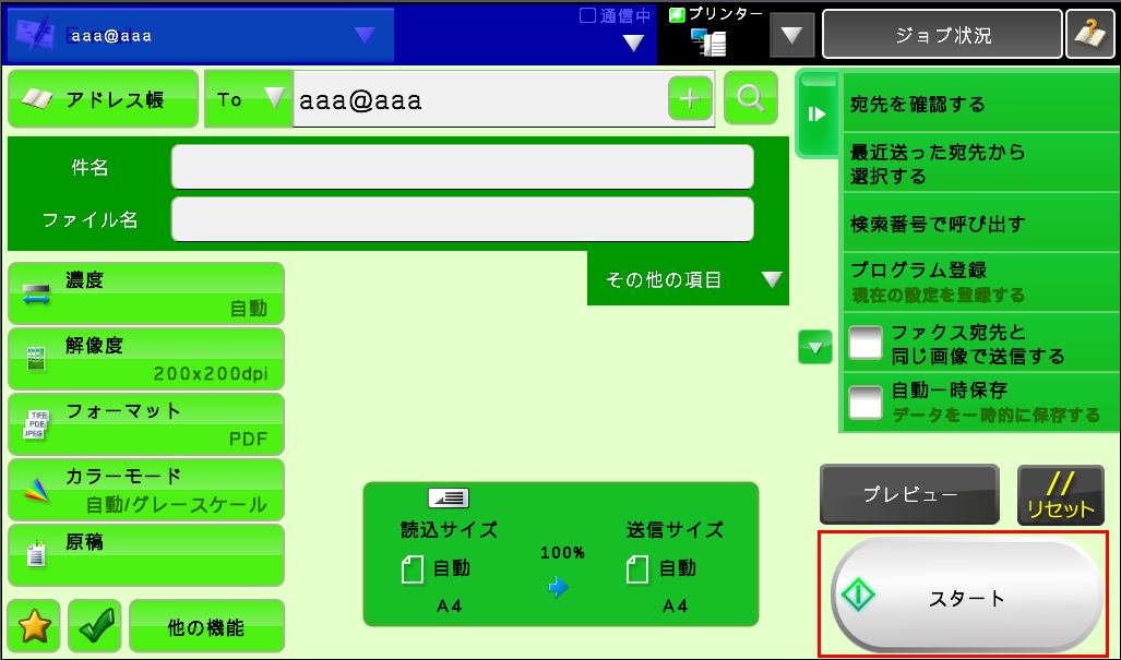 原稿を読み込み、送信を開始します。
