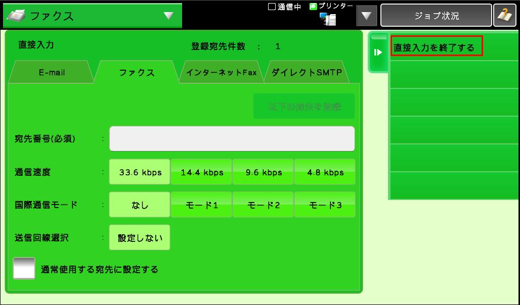 ⑥「直接入力」画面が表示されますので、[ファクス]を選択し、ファクス番号を入力してください。