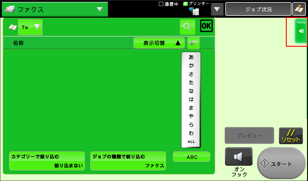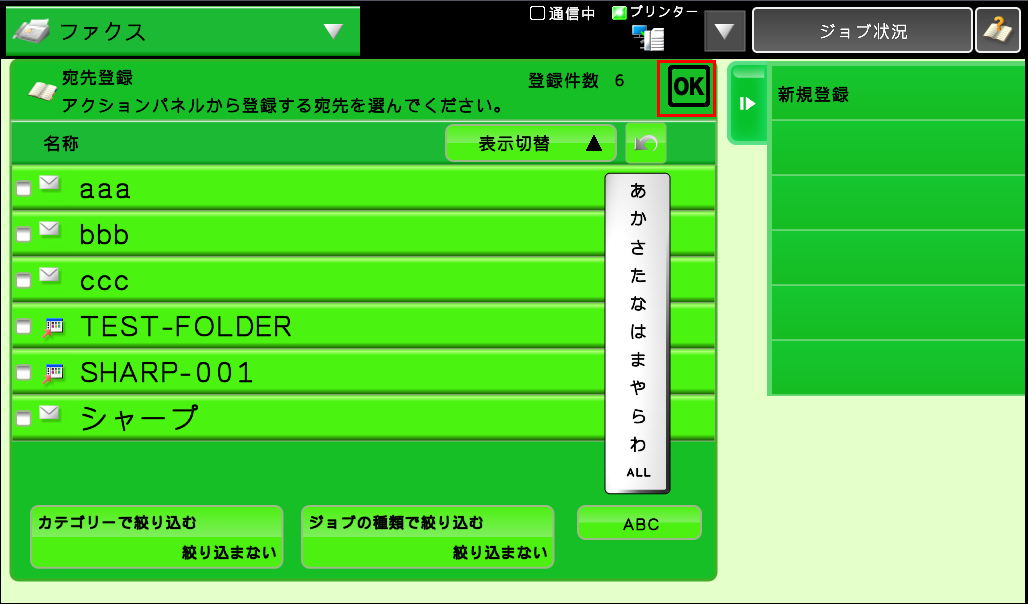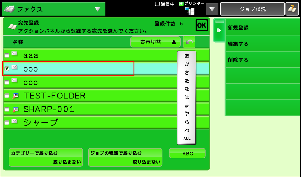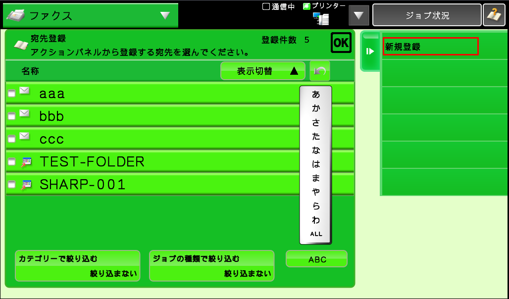 検索文字にひらがな/英字以外で登録した場合、"ALL"に表示されます。