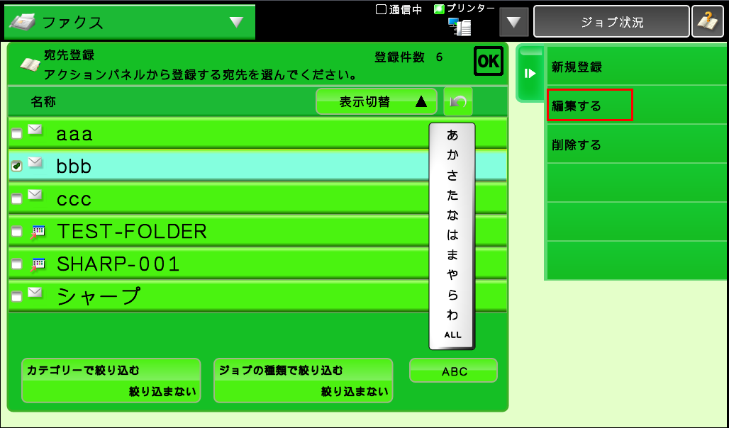 ④変更後、アクションパネルの[登録宛先一覧]を押してください。