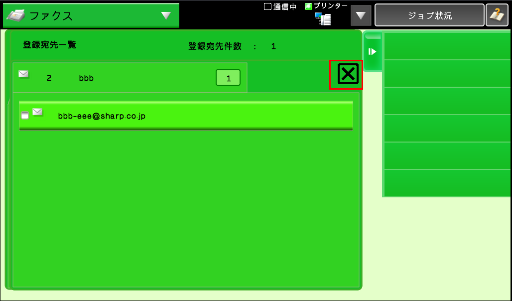 ⑨「登録宛先一覧」画面に戻りますので、[×]を押してください。
