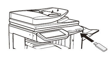②USBメモリーを「複合機」のUSB挿入口に差し込んでください。