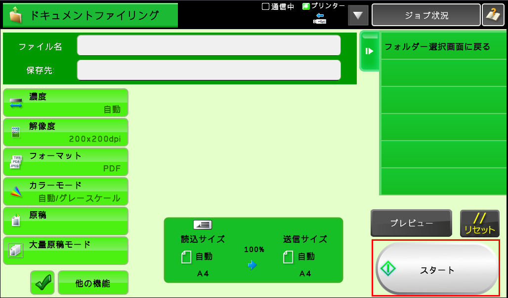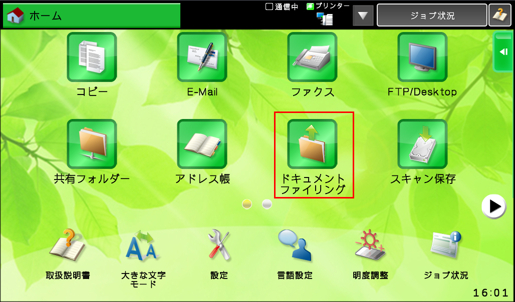 ③ホーム画面の[ドキュメントファイリング]を押してください。