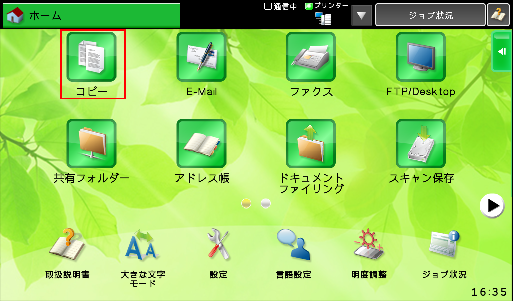 ①ホーム画面の[コピー]を押してください。