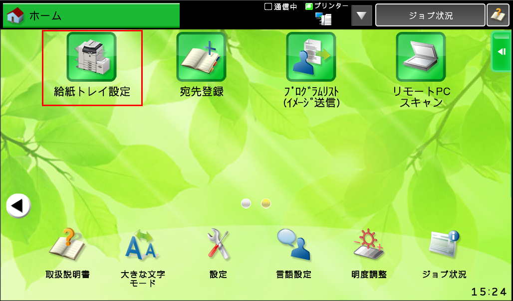 ②ホーム画面から「給紙トレイ設定」を選択してください。