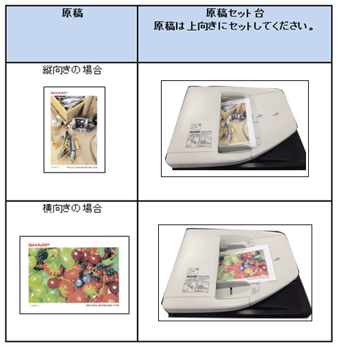 原稿をセットするときは次の向きでセットしてください。