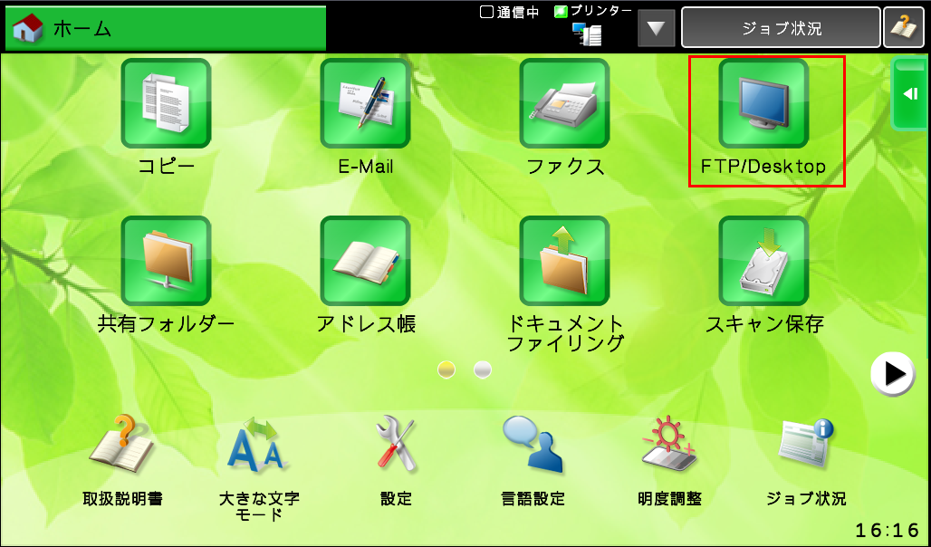 ②ホーム画面の[FTP/Desktop]を押してください。