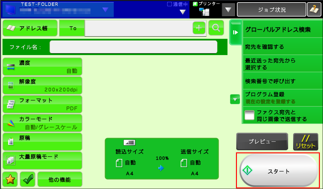 ⑤送信先を確認後、[スタート]を押してください。