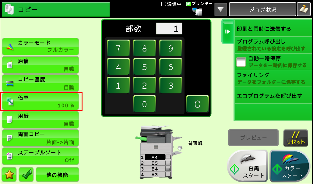 ※自動で拡大、縮小したい場合は■自動で原稿を拡大や縮小してコピーしたいのですが、どうすればよいですか?(倍率自動選択)を参照してください。