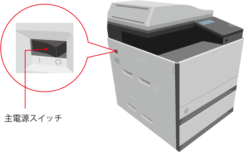 主電源スイッチを「切」にしたあと、もう一度「入」にします。