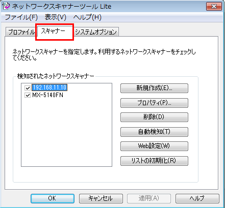※ネットワークスキャナーが自動検知されない場合は、下記の参考情報を参照してください。