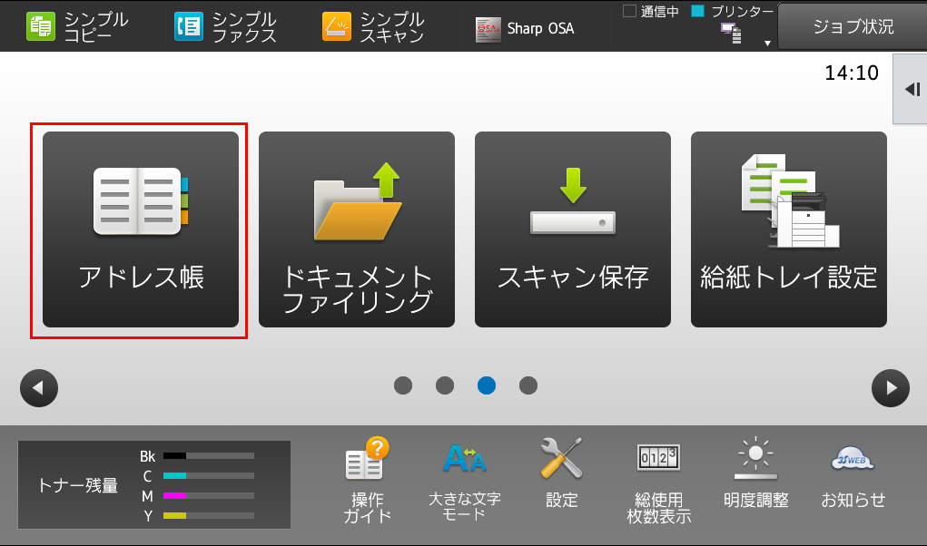 ※ [アドレス帳]ボタンがトップページにない場合は、ホーム画面を右にスクロールしてください。