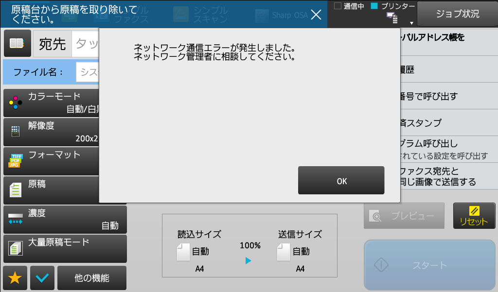 共有フォルダーへスキャンする際、宛先が見つからない場合などに表示されます。