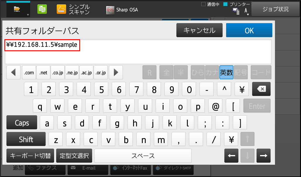 ※ IPアドレス(例:\\192.168.11.5\Sample)を入力する場合は下記のようになります。