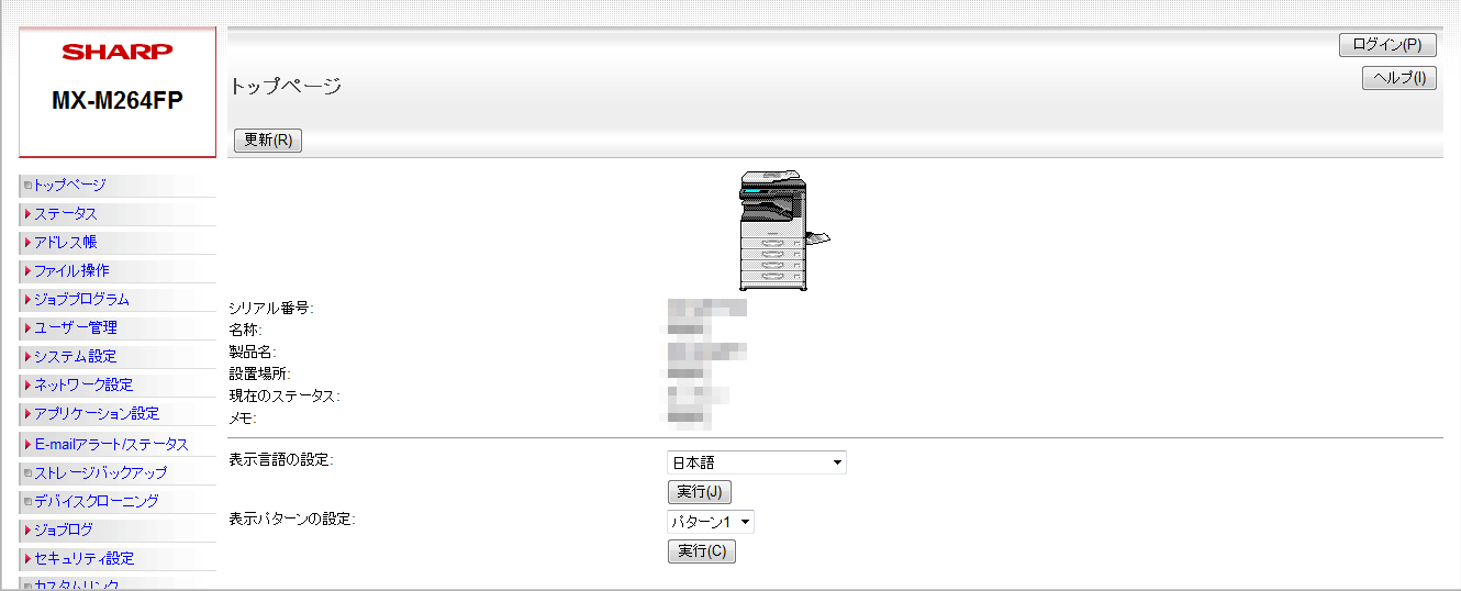② 以下のページが表示されたら複合機と接続できています。