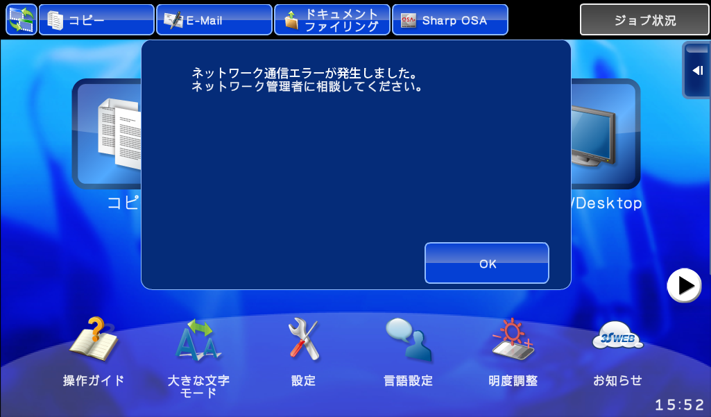 共有フォルダーへスキャンする際、宛先が見つからない場合などに表示されます。