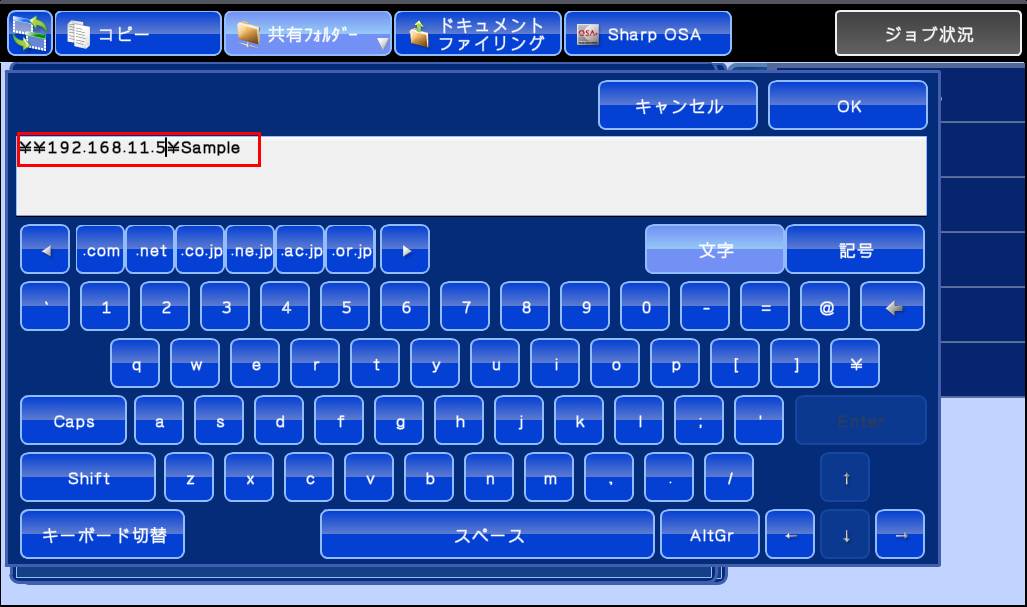 ※IPアドレス(例:\\192.168.11.5\Sample)を入力する場合は下記のようになります。