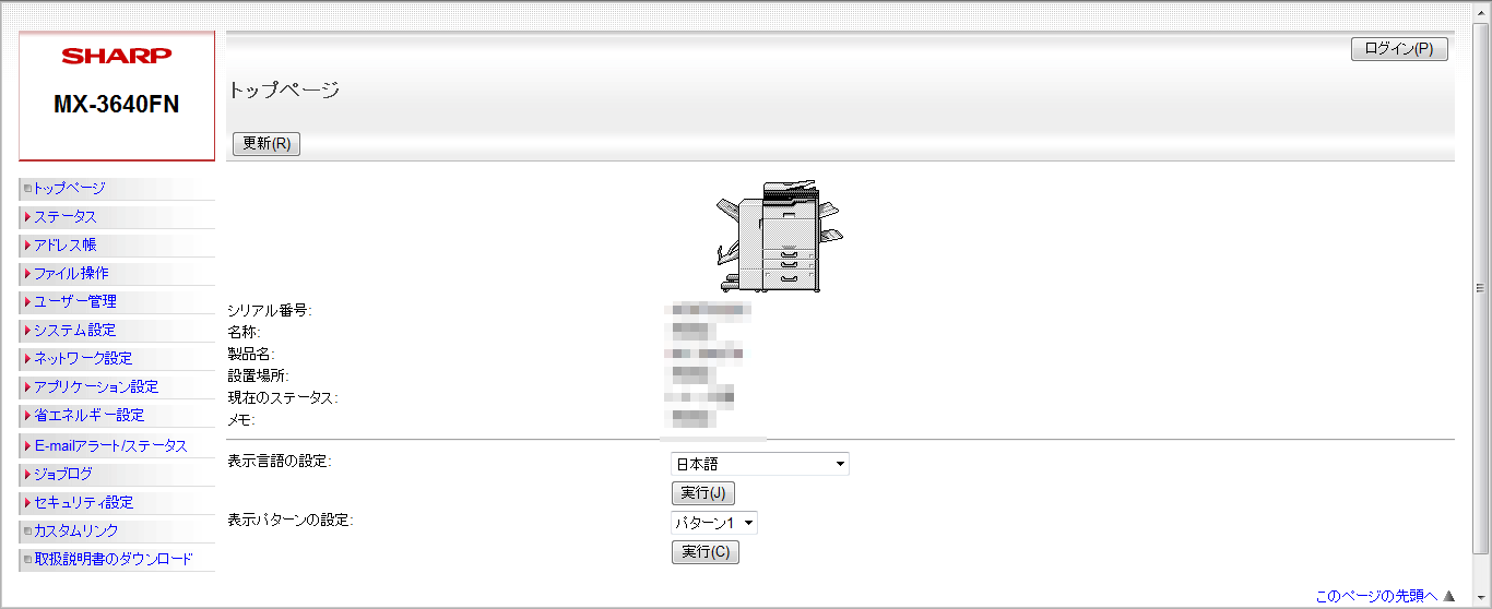② 以下のページが表示されたら複合機と接続できています。