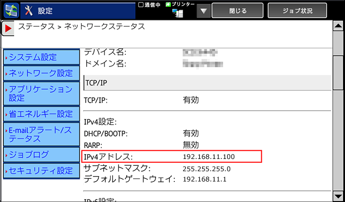 複合機のIPアドレスを確認する方法