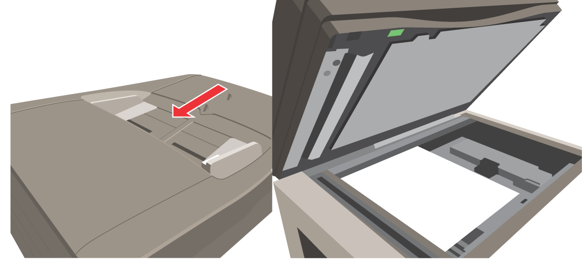 ①原稿を原稿自動送り装置の原稿セット台、または原稿台(ガラス面)にセットしてください。