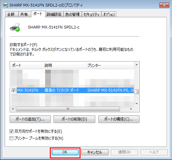 ⑦[OK]を押して、「当該プリンターのプロパティ」画面を閉じてください。