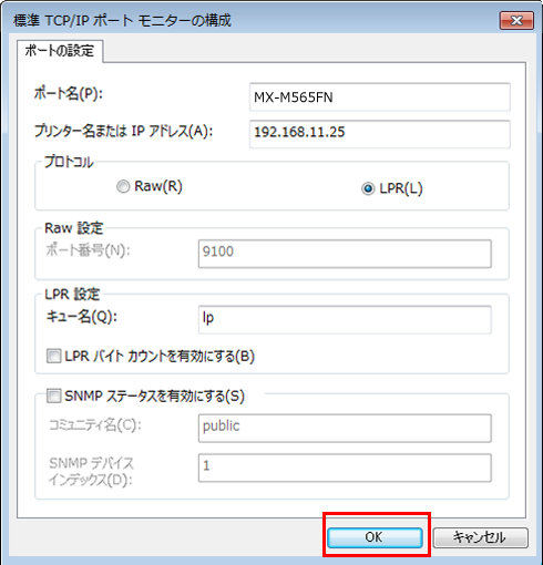 ⑦[OK]を押して、「当該プリンターのプロパティ」画面を閉じてください。