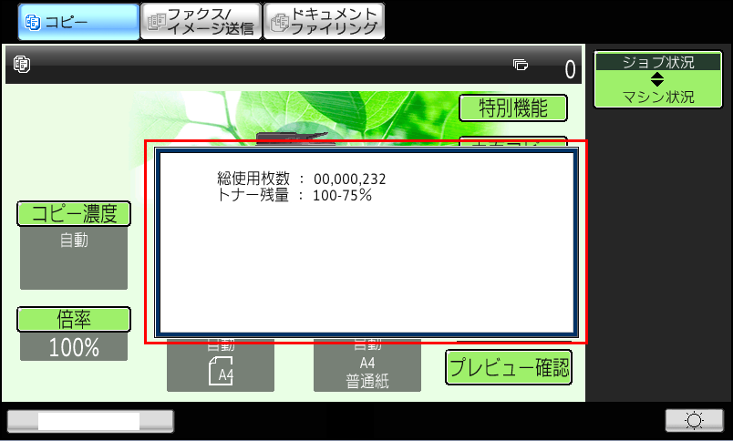 総使用枚数とトナー残量を表示するには?(FAQ No.00787)