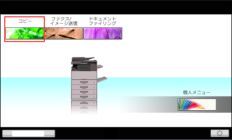 ①ホーム画面の[コピー]を押してください。