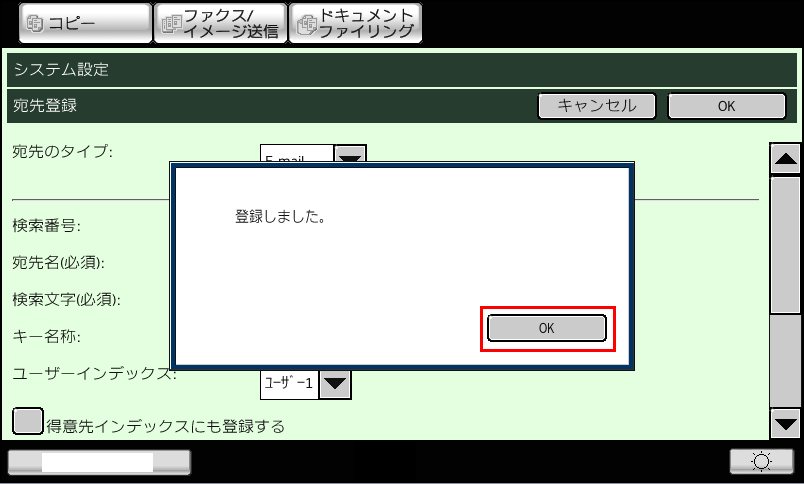 ④「登録しました。」と表示されますので、[OK]を押してください。