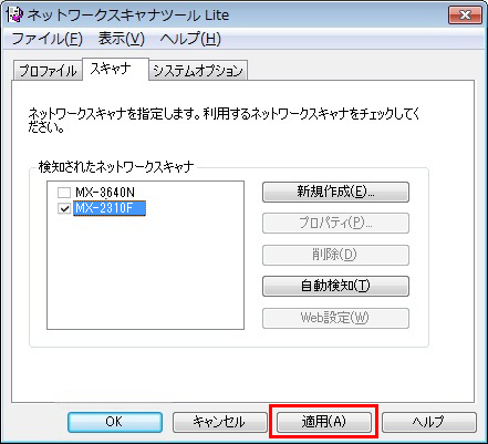 ※起動方法については、Q&A集の『「ネットワークスキャナツールLite」の起動方法が知りたい』をご覧ください。