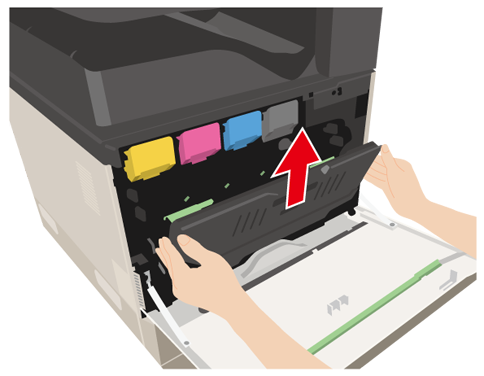 ③両手でトナー回収容器を持ち、ゆっくり持ち上げて取りはずしてください。