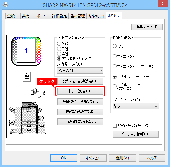 [トレイ設定]ボタンをクリックしてください。