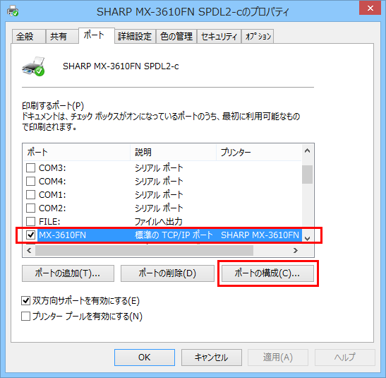 パソコンのプリンタードライバーの設定確認(パソコンの印刷ポートの設定)