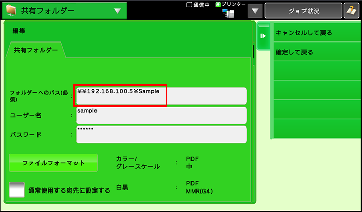 ※IPアドレス(例:\\192.168.11.5\Sample)を入力する場合は下記のようになります。
