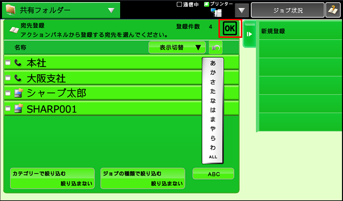 ⑬「登録宛先一覧」画面に戻りますので、[OK]を押してください。