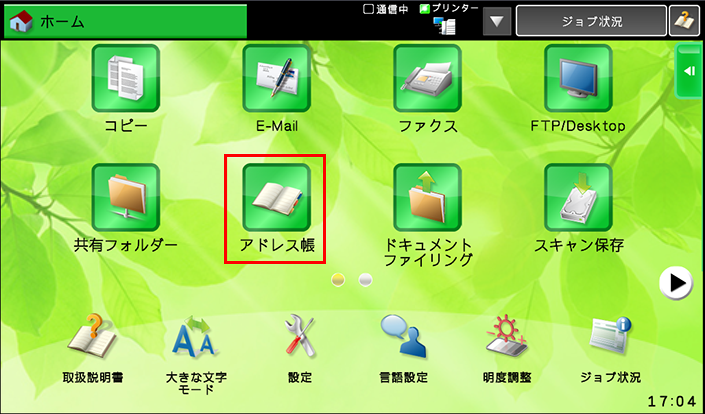 ※[アドレス帳]ボタンがトップページにない場合は、ホーム画面を右にスクロールしてください。