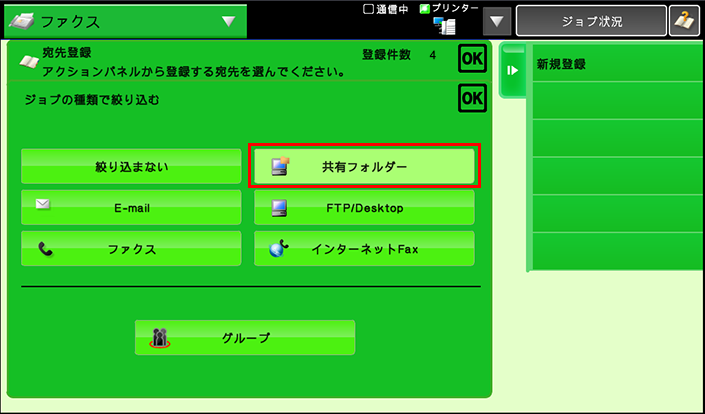 ④「ジョブの種類で絞り込む」画面が表示されますので、[共有フォルダー]を押してください。