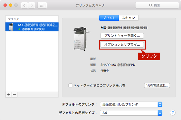[オプションとサプライ...]ボタンをクリックします。